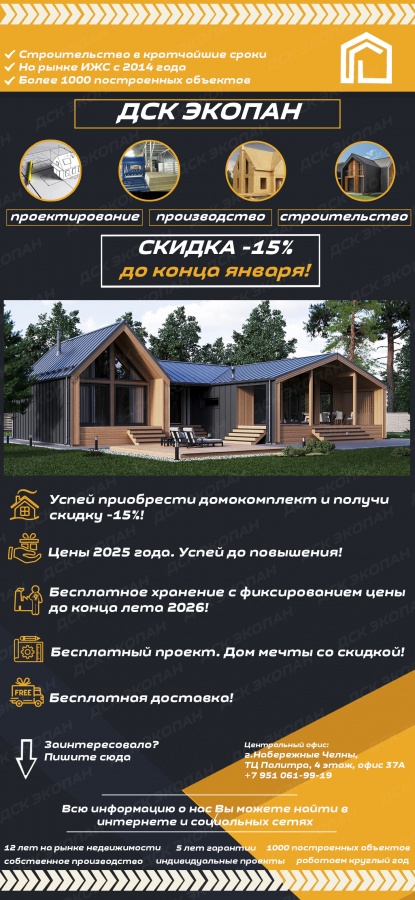 ДСК Экопан, ООО Республика Татарстан, г. Нижнекамск, ул.Корабельная, д.42, ТЦ " СИТИ ЦЕНТР", офис 217 +7 8555 48-80-46 +7 950 326-87-78 Пн-Пт 09:00 - 18:00 E-mail: ecopan116@yandex.ru Мы в Вконтакте